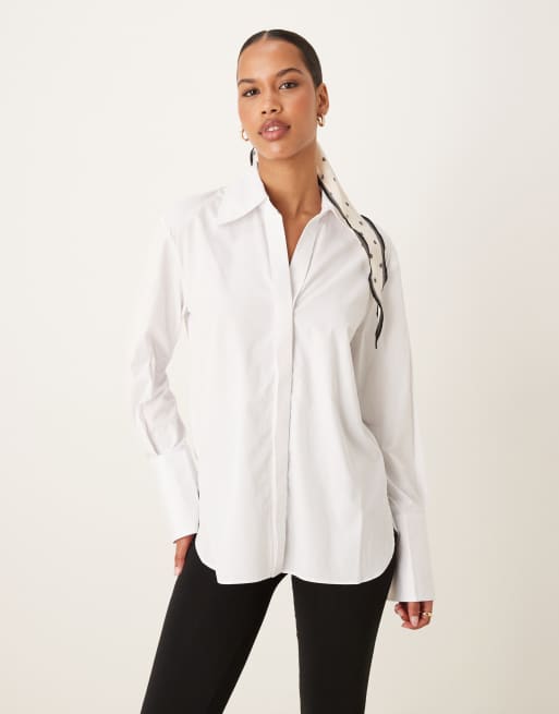 Mango – Vit skjorta med långa ärmar och rundad nederkant