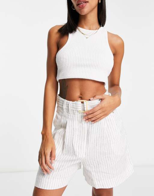 Mango – Vita, kritstrecksrandiga shorts med spänne, del av set