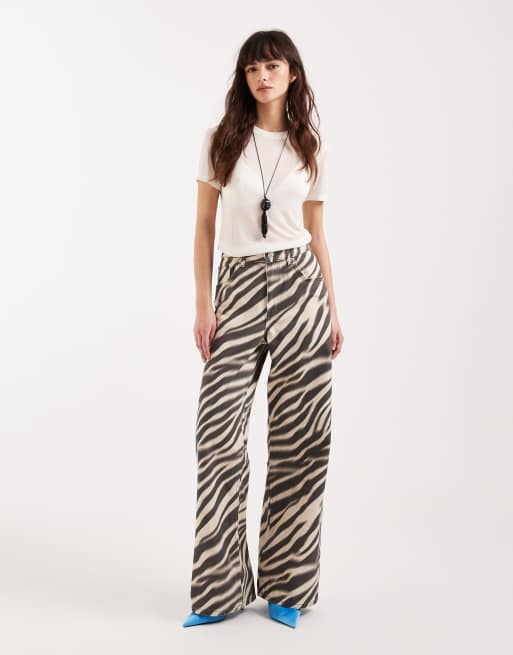 Mango – Zebri – Zebramönstrade, raka jeans i 100% bomull