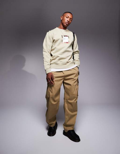 Marshall Artist – House – Stenfärgad sweatshirt med rutig, boxig logga