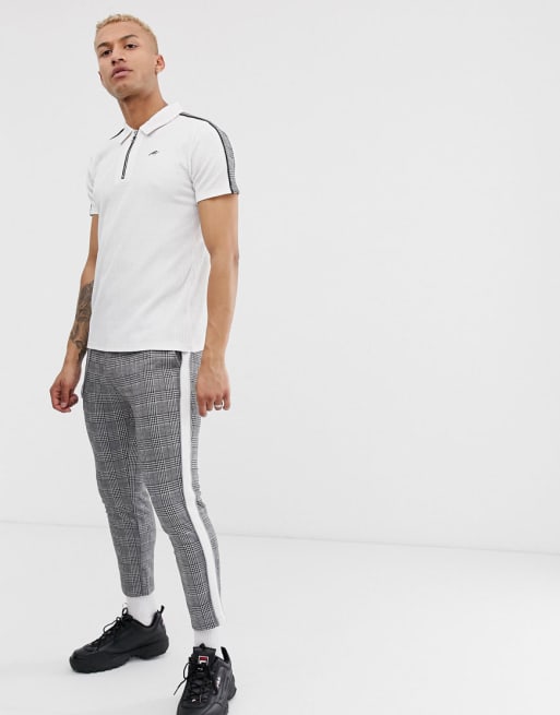 Mauvais – Pikétröja med dragkedja i halsen och ankellånga byxor med rutig revär
