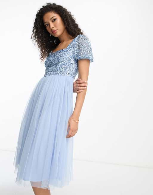 Maya – Brudtärnor – Babyblå midiklänning med puffärmar