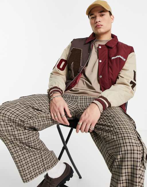 Mennace – Bomberjacka med tvådelad design och märken i collegestil