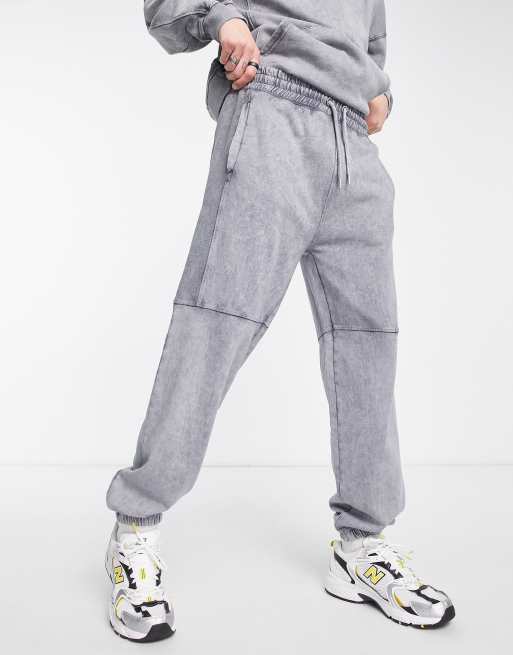 Mennace – Ljusgrå, avslappnade mjukisbyxor med våfflade paneler, del av set