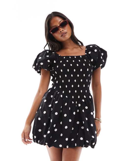 Miss Selfridge Petite – Svart, prickig miniklänning med ballongkjol