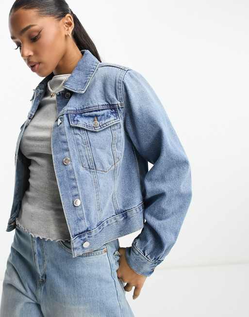 Miss Selfridge – Blåtvättad jeansjacka i girlfriend-modell