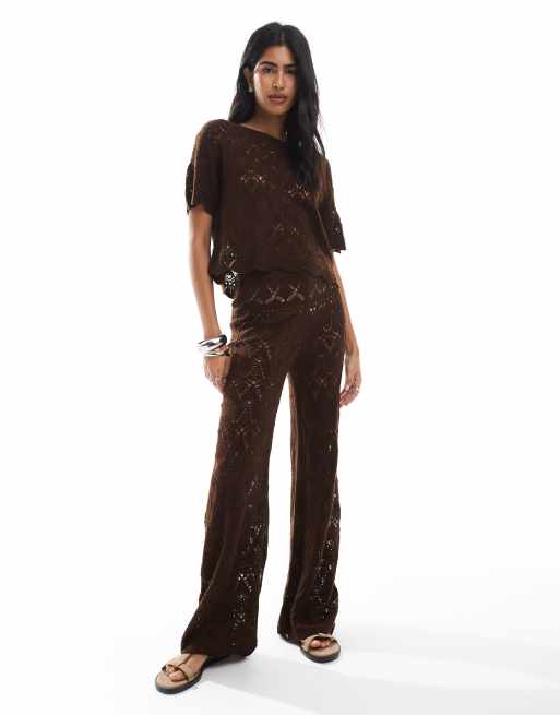 Miss Selfridge – Chokladbruna, virkade strandbyxor med raka ben, del av set