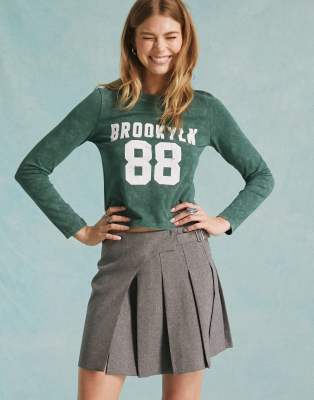 Miss Selfridge – Grå, plisserad kjol med omlottdesign och spänne
