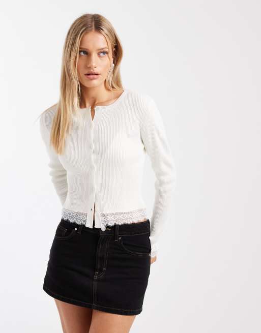 Miss Selfridge – Gräddvit ribbad kofta med spets