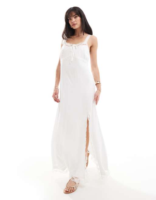 Miss Selfridge – Gräddvit slipklänning i maxilängd med strukturerade infällningar