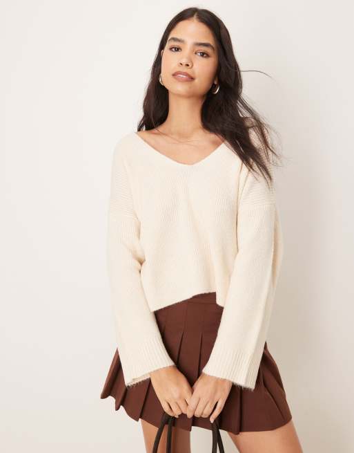 Miss Selfridge – Gräddvit, stickad tröja med v-ringning
