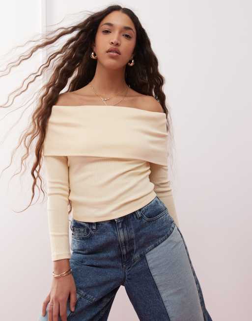 Miss Selfridge – Gulbeige topp med bred, nedvikt kant