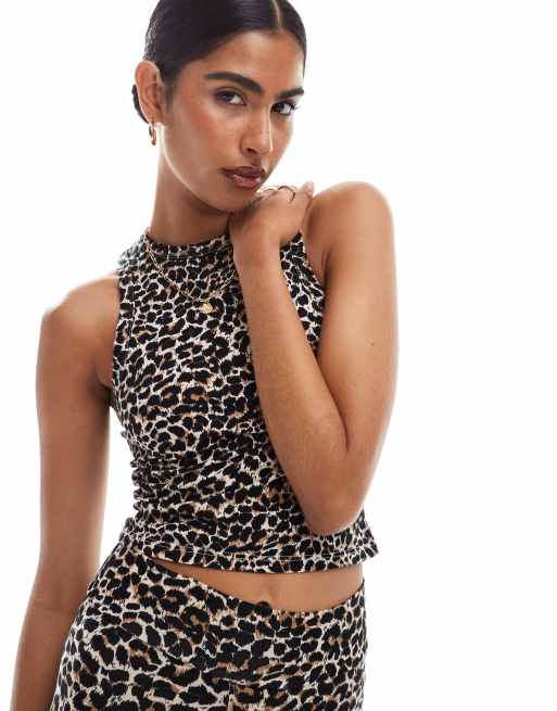 Miss Selfridge – Leopardmönstrad topp med brottarringning, del av set