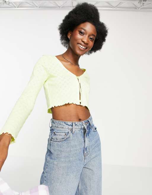 Miss Selfridge – Limegrön långärmad kofta med hjärtmönster och knytning framtill