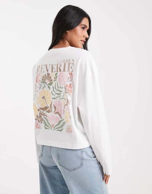 Miss Selfridge – Liten t-shirt i skater-modell med långa ärmar och tryck