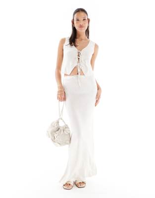 Miss Selfridge – Ljusbeige diagonalskuren maxikjol i linnemix