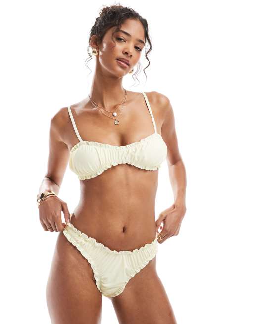 Miss Selfridge – Ljusgul bikini med volang och rysch