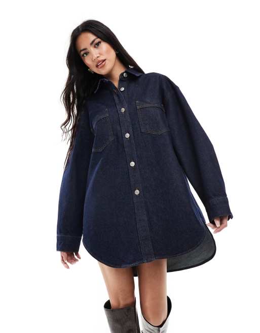 Miss Selfridge – Mellanblå tunika i oversize med knäppning av denim