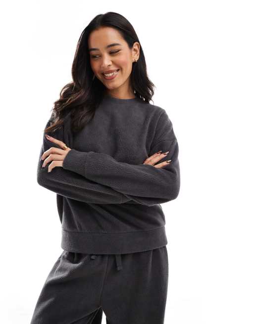 Miss Selfridge – Mörkgrå sweatshirt i fleece