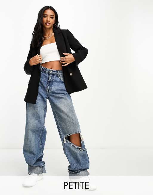Miss Selfridge Petite – Svart, dubbelknäppt kavaj i oversize