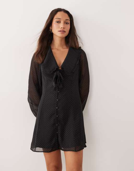 Miss Selfridge – Prickig miniklänning med knäppning och krage