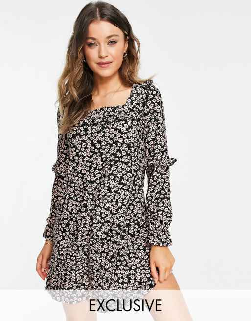 Miss Selfridge – Rosa småmönstrad miniklänning med volangpanel framtill