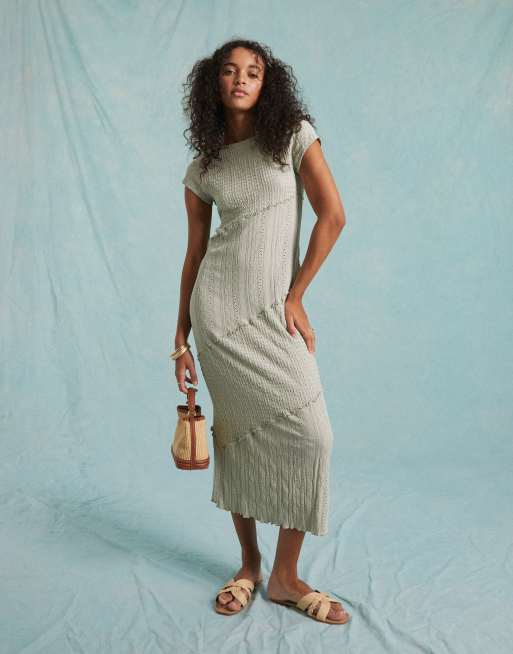 Miss Selfridge – Salviagrön strukturerad miniklänning med långa ärmar och djup ringning baktill