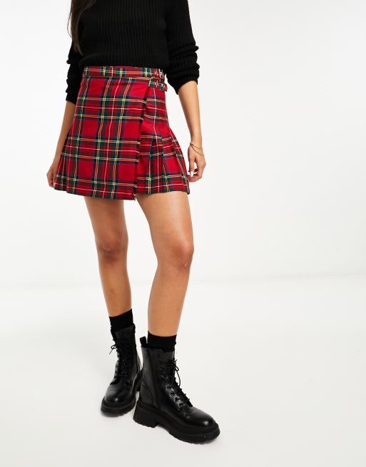Miss Selfridge – Skotskrutig mini-kiltkjol med spänne