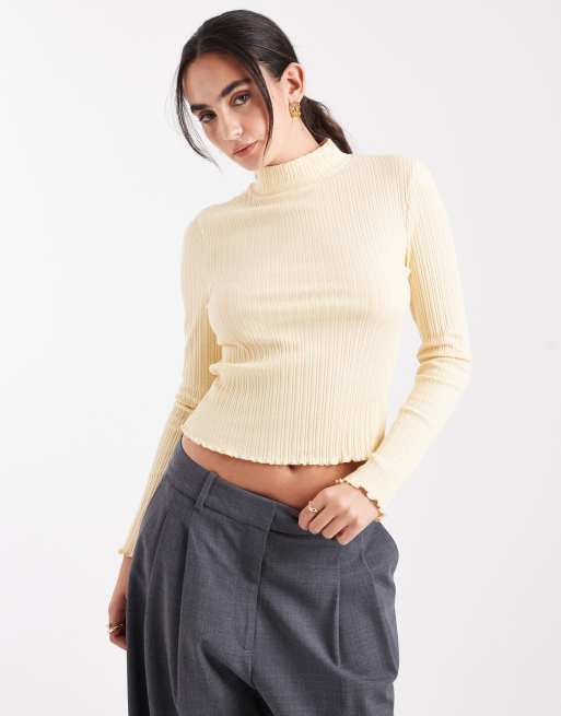 Miss Selfridge – Smörgul, ribbad topp med hög krage