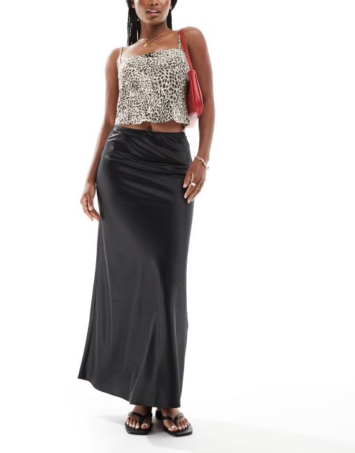 Miss Selfridge – Svart diagonalskuren maxikjol i satin