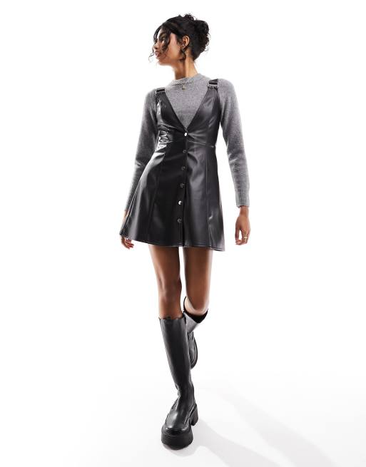 Miss Selfridge – Svart förklädesklänning i läderimitation med spänne