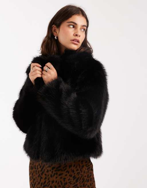 Miss Selfridge – Svart, kort jacka i fuskpäls