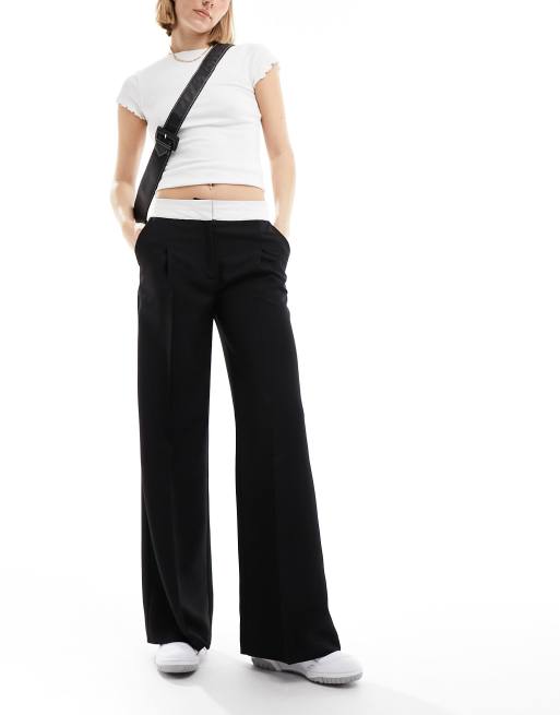 Miss Selfridge – Svarta byxor med nedvikt midjeband
