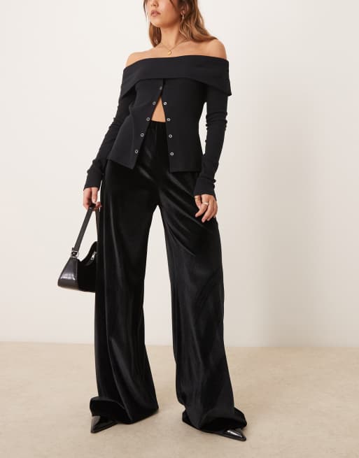 Miss Selfridge – Svarta, vida byxor i sammet