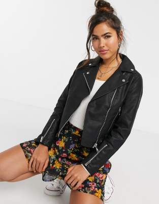 Miss Selfridge – Svart bikerjacka i skinnimitation