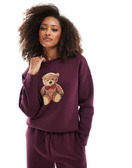 Miss Selfridge – Vinröd sweatshirt med nallebjörnstryck