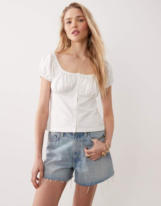 Miss Selfridge – Vit milkmaid-topp med knäppning