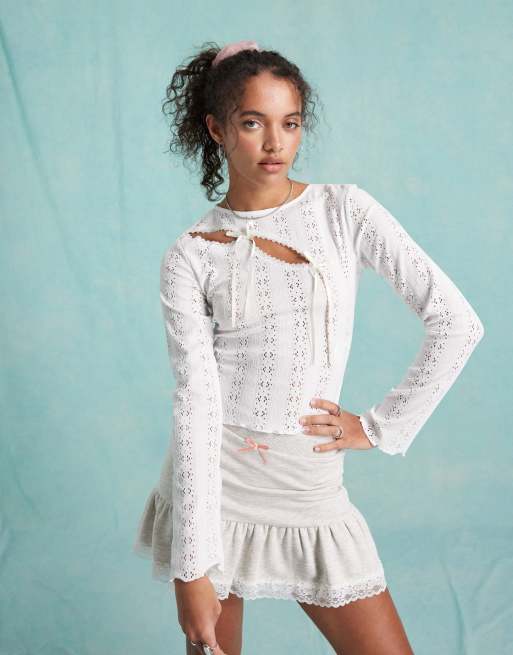Miss Selfridge – Vit spetstopp med dubbel rosett