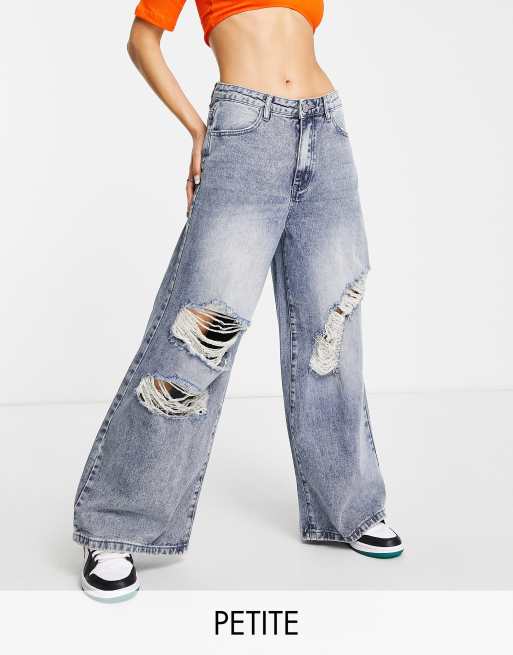 Missguided Petite – Blå jeans med vida ben och revor