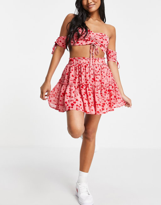 Missguided Petite – Rosa, mönstrad set med crop top & kjol
