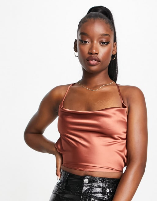 Missguided – Chokladbrunt satinset med linne och kjol