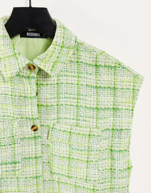 Missguided – Grönrutigt set av tweed med väst & kjol