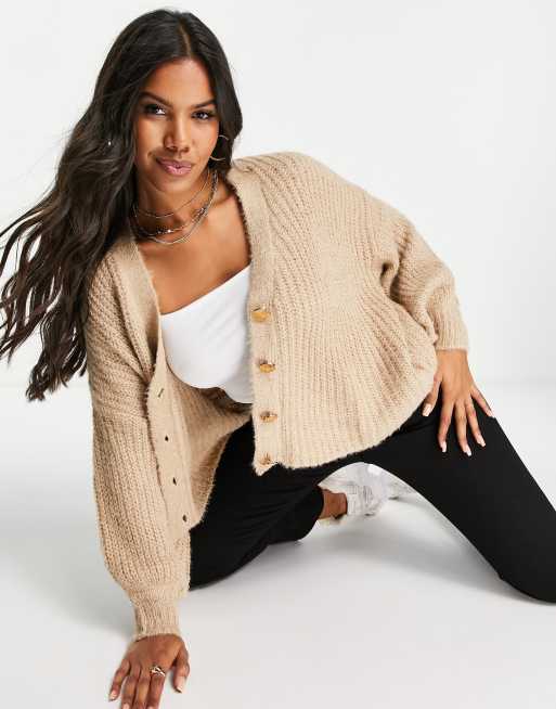 Missguided – Ljusbeige, fluffig, strukturerad kofta