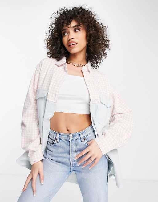 Missguided – Rosa och blå, hundtandsmönstrad skjorta