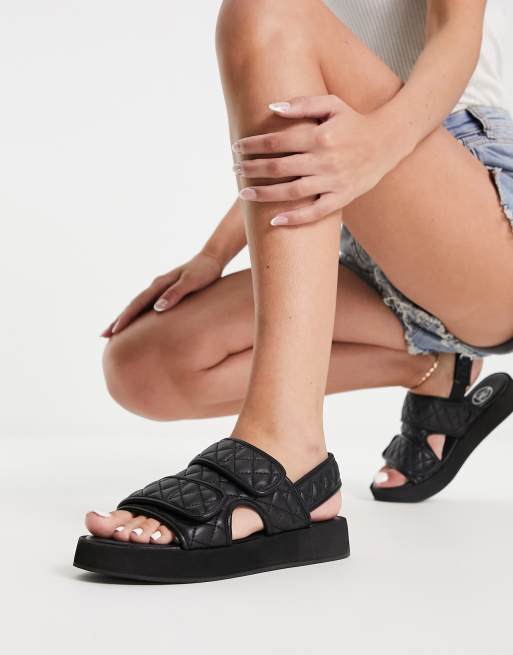 Missguided – Svarta, quiltade farfars-sandaler