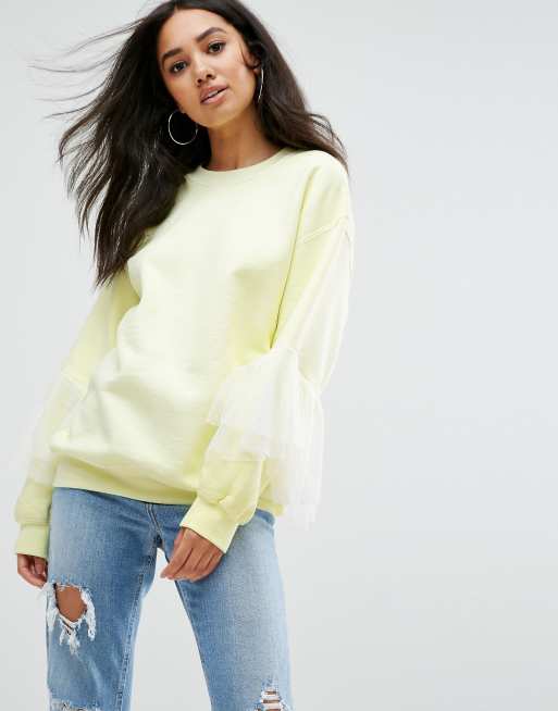 Missguided - Sweatshirt av tyll i oversize med volangärm