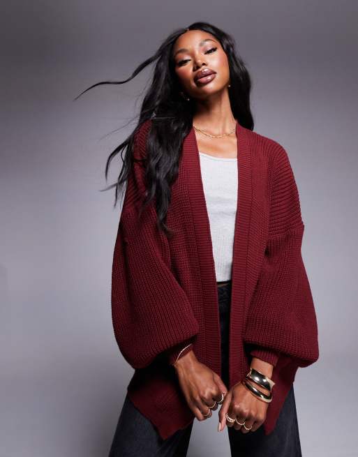 Missy Empire – Vinröd, stickad kofta med ficka