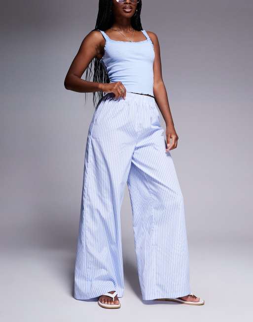 Missyempire – Blårandiga, vida byxor med elastisk midja