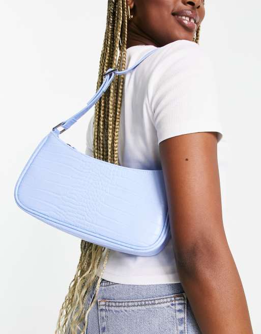 Monki – Blå krokodilskinnsmönstrad axelväska