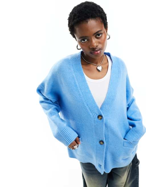 Monki – Blå, stickad oversize kofta med v-ringning